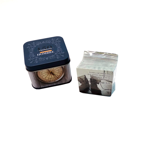 150 versículos diferentes de promesas de la Biblia, por un lado son en español y del otro en inglés. El regalo idea para un hombre de fe.